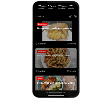 Te planificaré 7 planes de alimentación personalizados compuestos por distintos alimentos que te gusten para que tengas variedad pero todos orientados a tu objetivo.